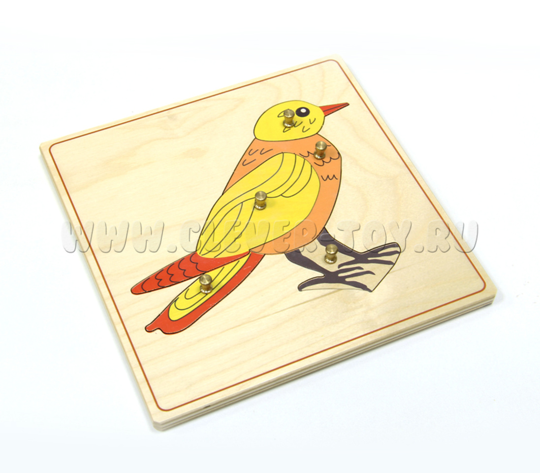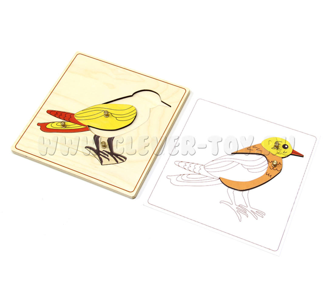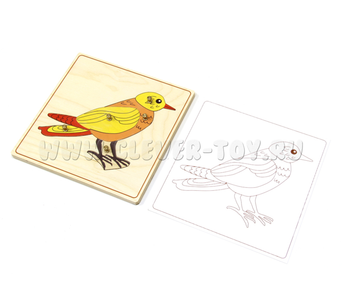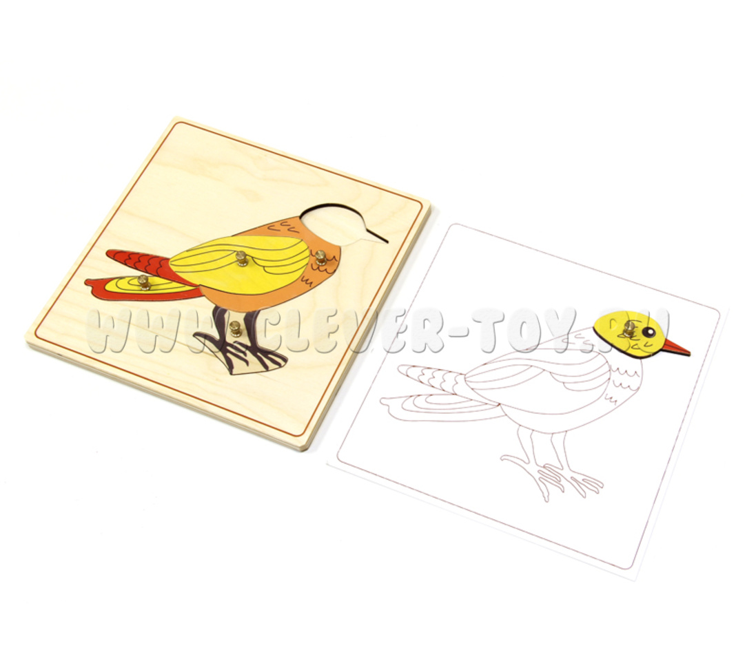 Знакомство со строением птицы путем составления целого из частей и проговаривания их названий способствует развитию речи, увеличению словарного запаса и формированию восприятия формы.