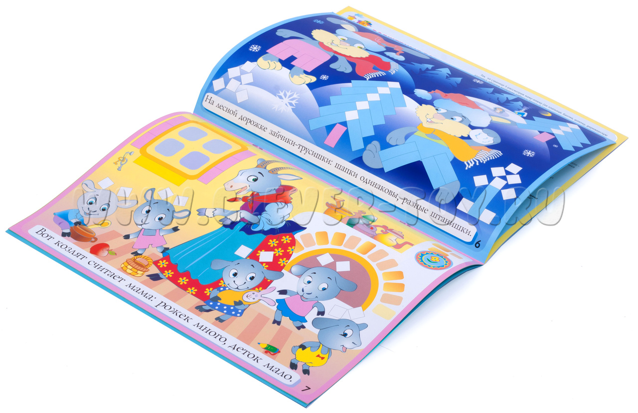 • на странице 7 можно не только выложить рожки, но и нащупать их, попытаться маме - козе их сосчитать