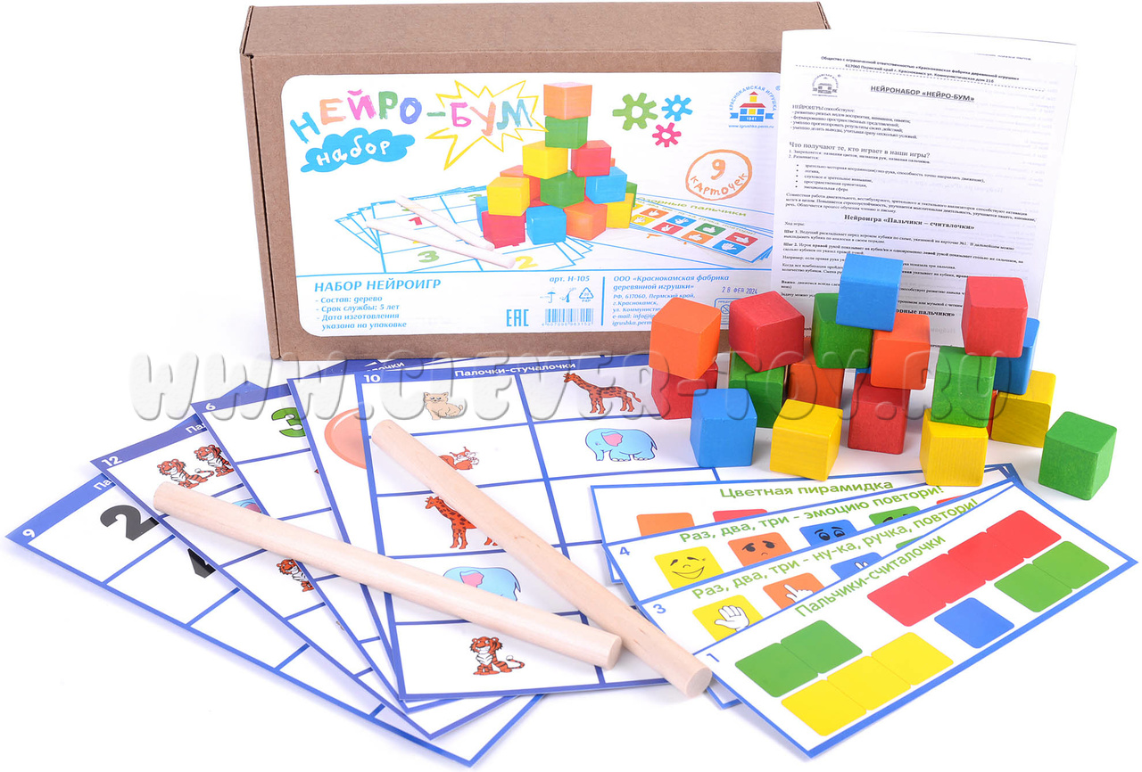 Набор нейроигр (20 деревянных кубиков, карточки с заданиями)