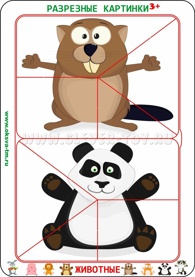 На каждой из частей есть детали изображения, по которым можно подобрать к ней недостающую часть. Частей без деталей рисунка нет.