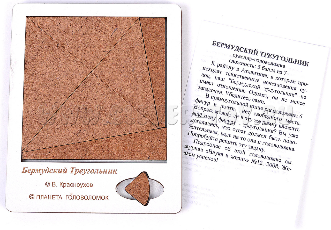 Таинственная головоломка с интригующим названием "Бермудский треугольник". Ваша задача будет не менее интересной. Вам необходимо каким-то образом вложить дополнительный треугольник в нишу. Но как вы видите, вся ниша уже заполнена.