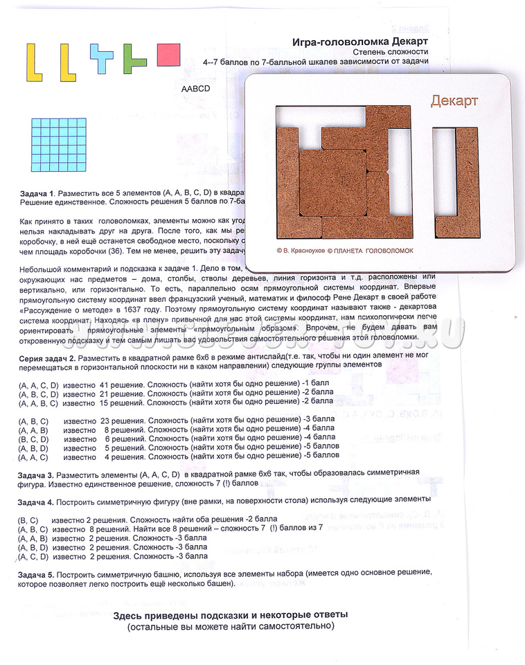 У этой головоломки есть большая инструкция, где дополнительно описано еще 4 задания на расположение элементов.