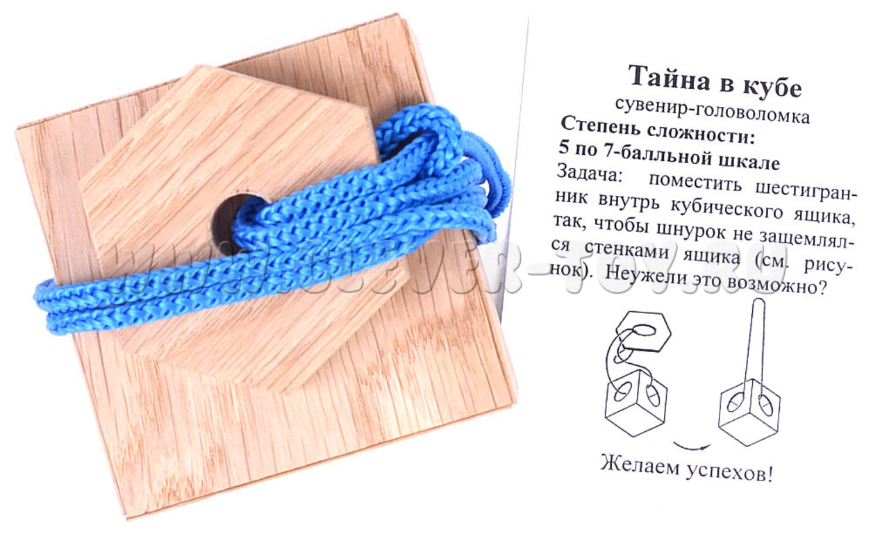 Цель игры - поместить шестигранник в кубический ящик так, чтобы стенки не защемляли шнурок. Эта задача является довольно сложной и требует от игрока множества проб и ошибок. Уровень сложности головоломки составляет 5 из 7, что говорит о том, что решение задачи будет достаточно непростым.