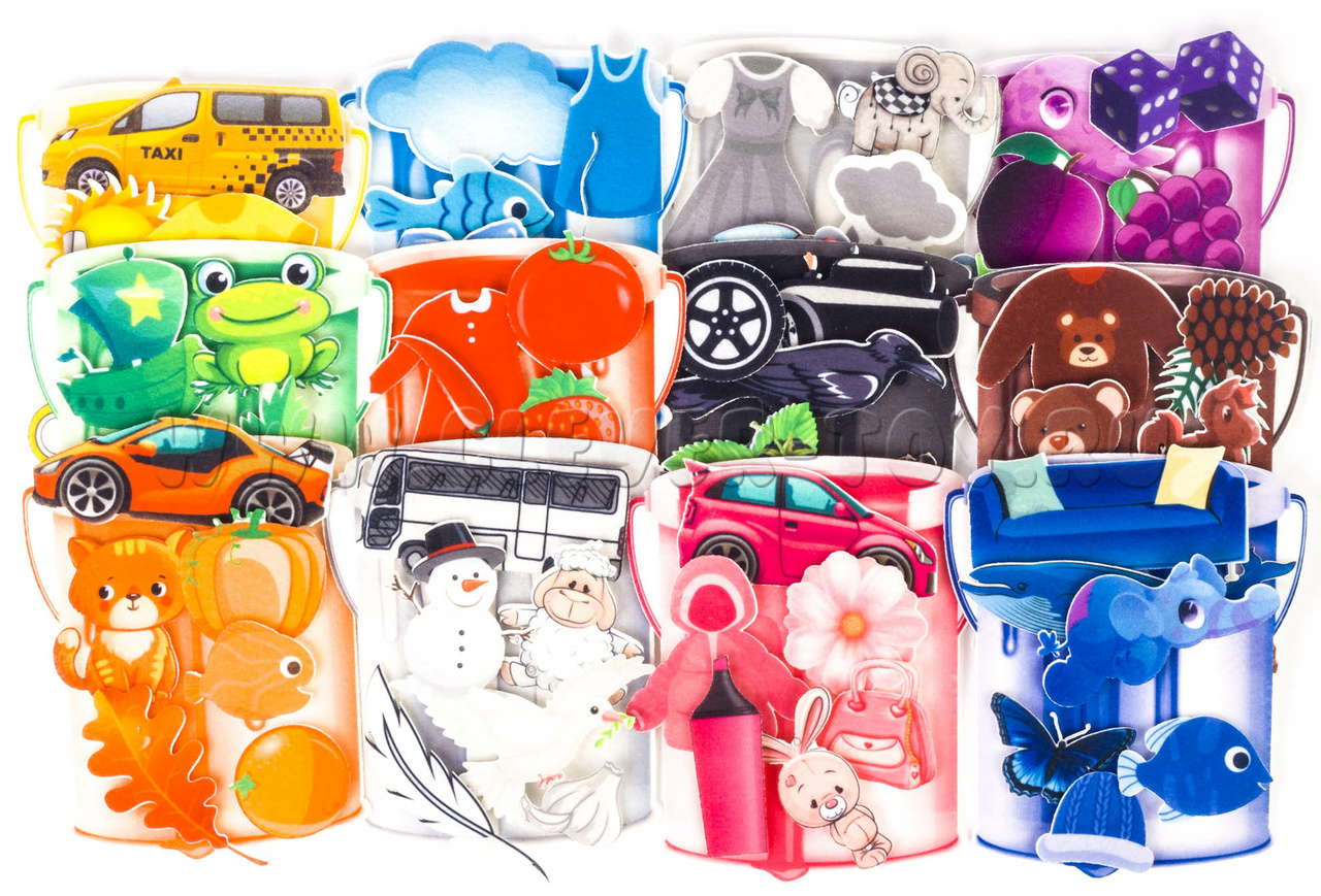 Игровой набор "Банки по цветам" -это многоразовые аппликации, с помощью которой детям будет легко выучить и закрепить знания о цветах, оттенках и предметах.