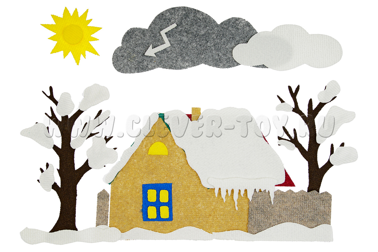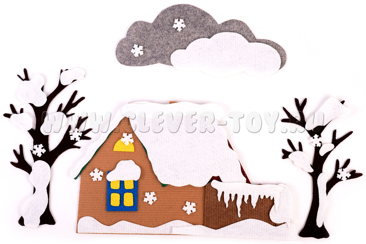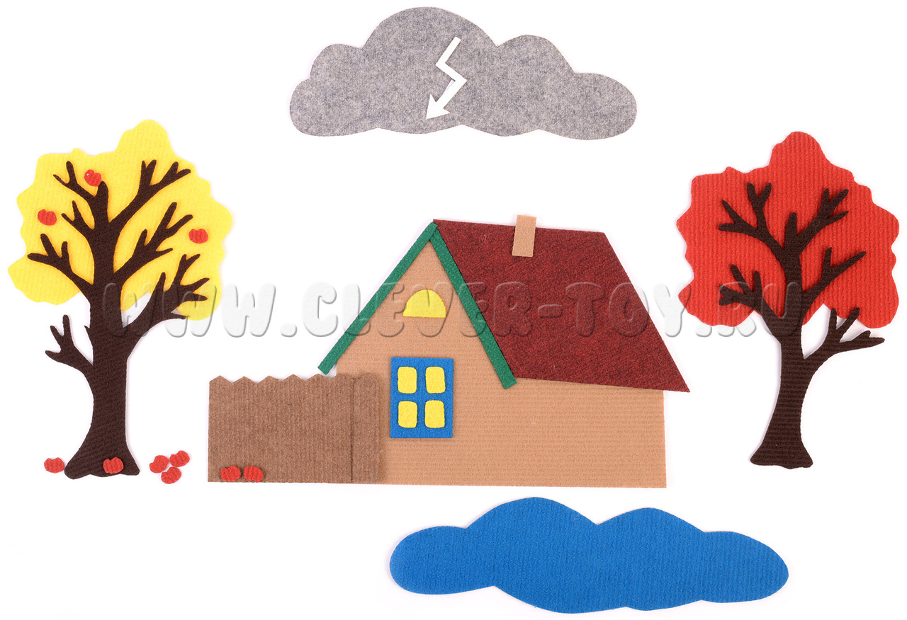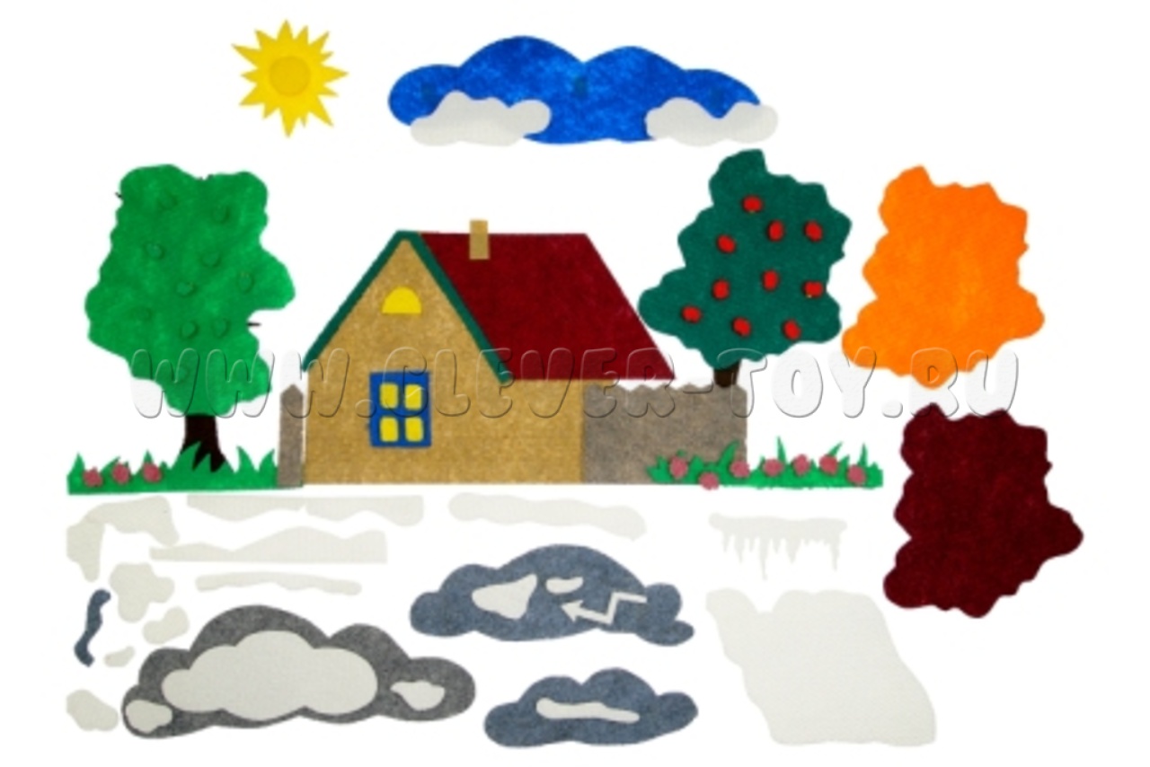 С помощью ярких и красивых ковролиновых деталей на многоразовых липучках домики превращаются в осенний, зимний, весенний и летний. Набор рекомендован опытными педагогами дошкольного образования для того, чтобы в игровой форме познакомить ребёнка с разными временами года.