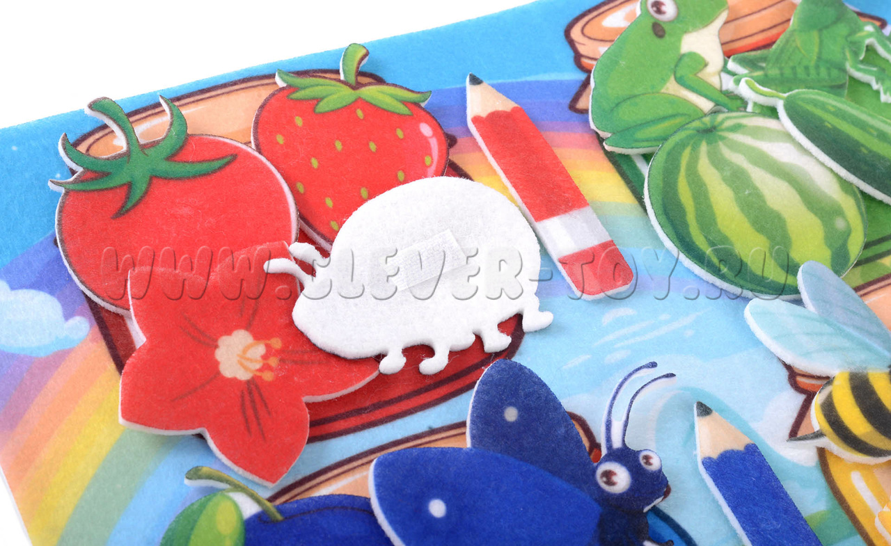 Игра изготовлена из фетра – приятного на ощупь материала, полностью безопасного для детей.