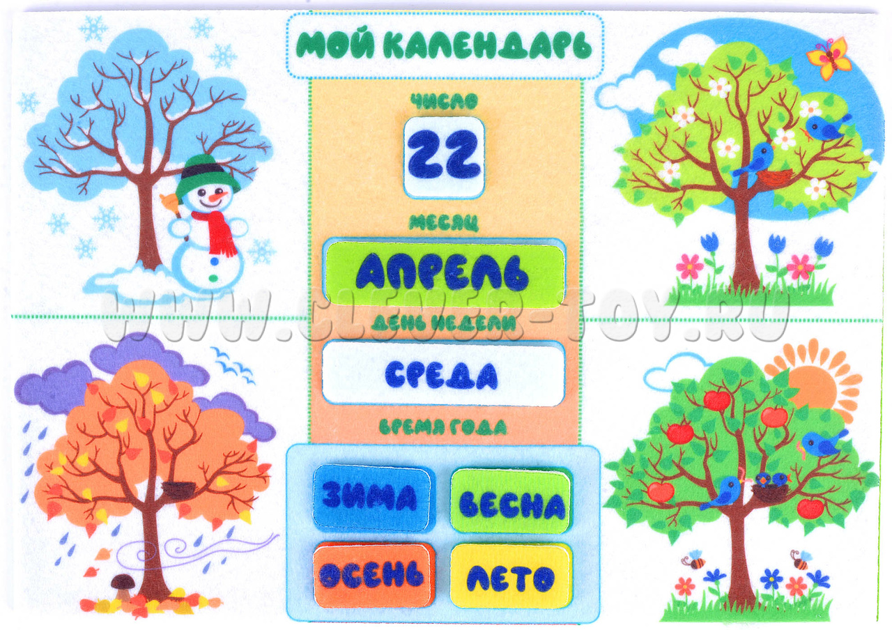 Следить за погодой и сменой времён года теперь легко и интересно! Благодаря авторскому развивающему пособию для дошкольников из яркого, мягкого фетра от компании «LIP-LIP».