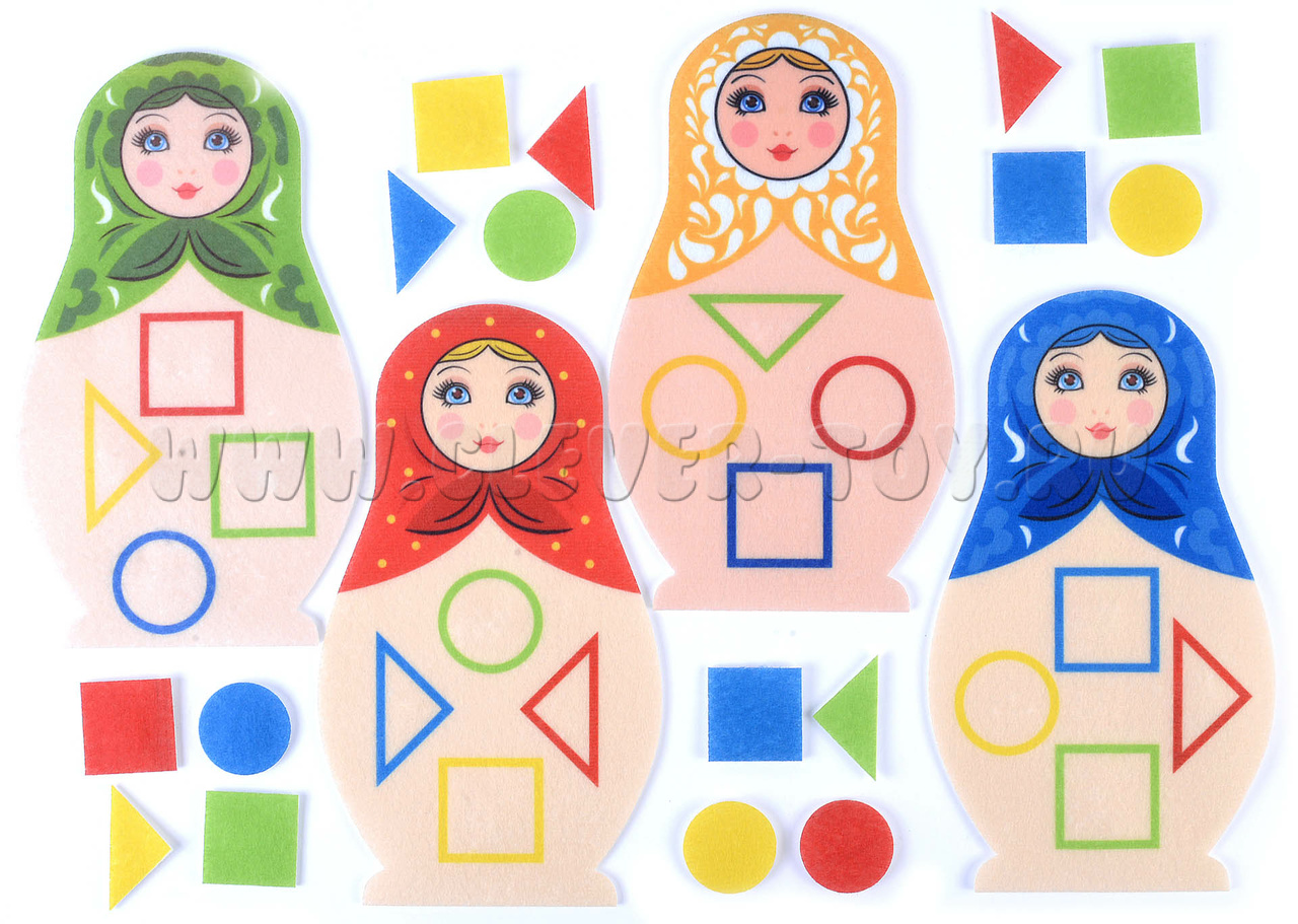 4 матрешки высотой 24см, геометрические фигурки.