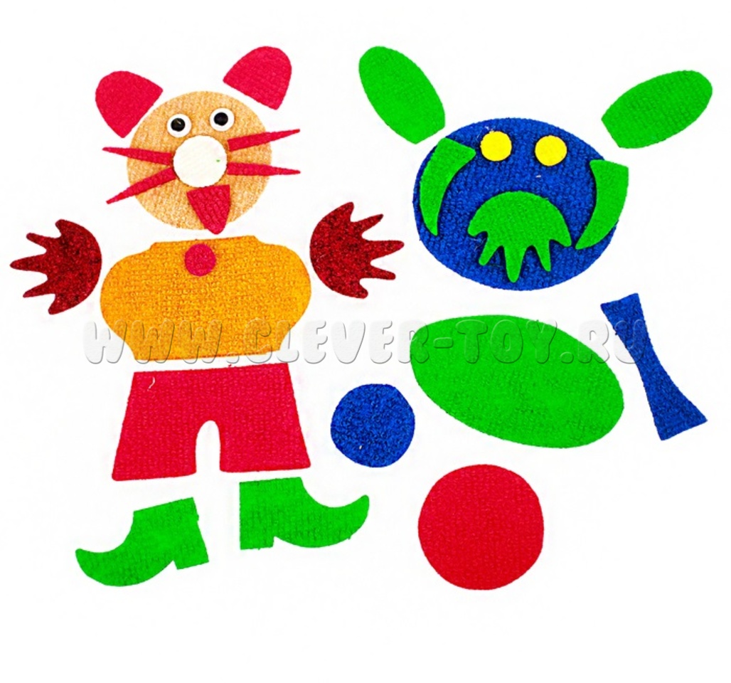 • 28 игровых элементов разных размеров, цветов и форм на многоразовых липучках;