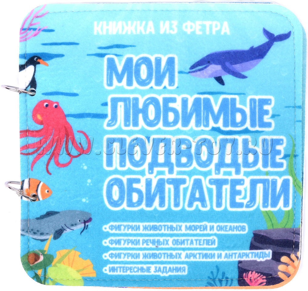 В комплекте книга и фигурки обитателей водных глубин выполненные в мультяшной забавной форме.