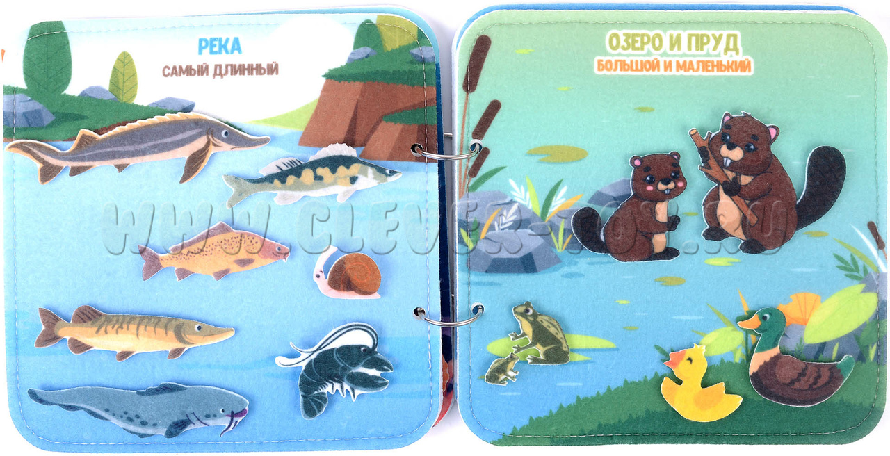 Морские обитатели - мягкая развивающая книга для знакомства ребёнка дошкольного возраста с миром, находящимся под водой. Играя и занимаясь, ребёнок расширяет кругозор, знакомится с названиями и внешним видом морских жителей и растений, развивает логику, фантазию.