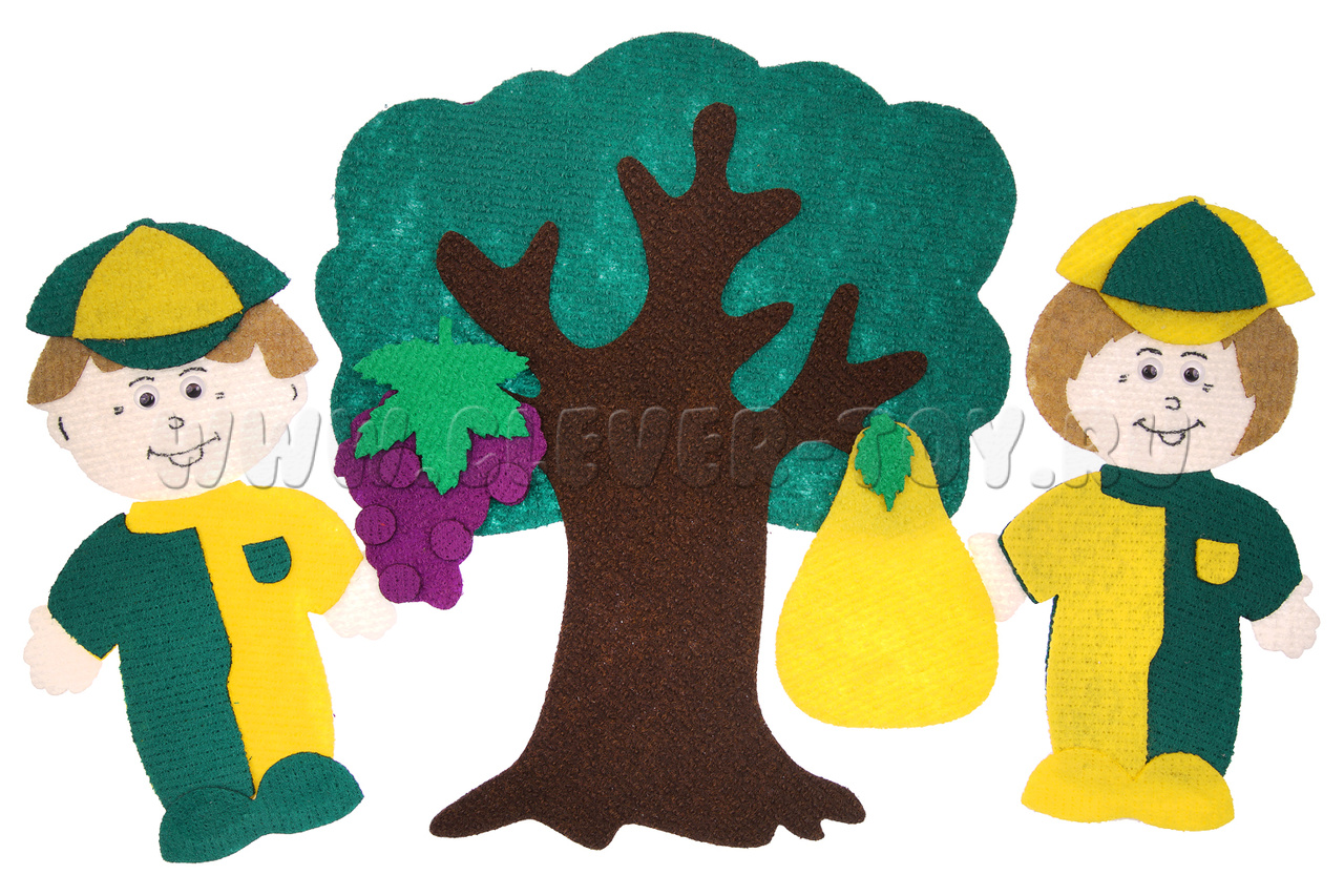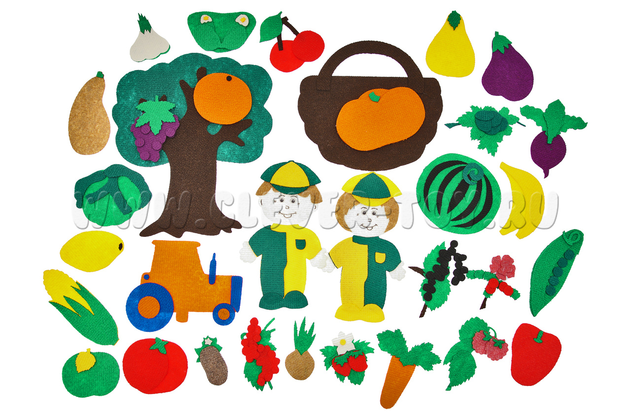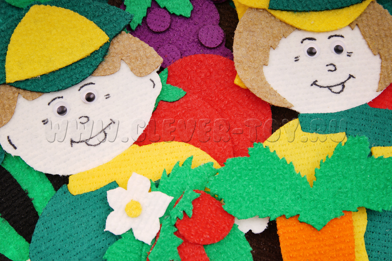 • герои – мальчик и девочка (каждый по 25*15 см); предметы – трактор (20*15 см), дерево (30*30 см), корзина (26*26 см);