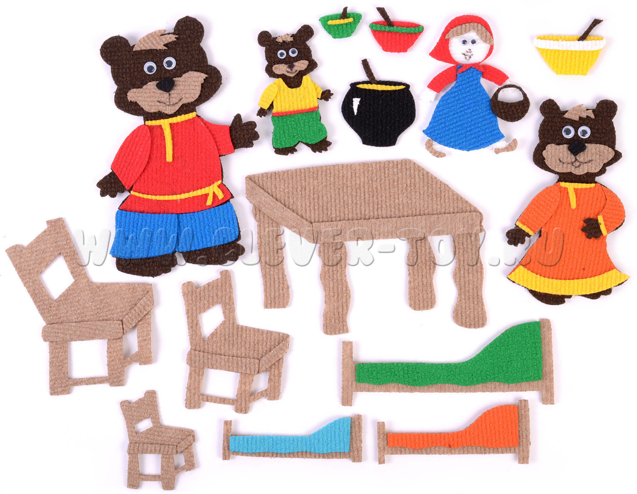 • персонажи сказки: медведь, медведица, медвежонок, девочка;