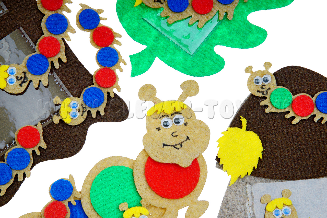 • звуковые гусенички: маленькие – 10 штук, большая – 1 шт., состоит из 9 кругов и головы.