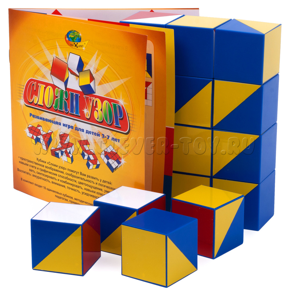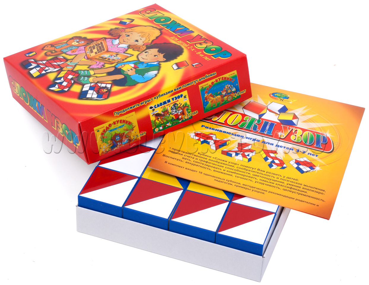Замечательные кубики для развития детей, для разного возраста, просто разные виды игр можно придумать в разном возрасте. Малыши может просто башню будут собирать, ,постарше уже узоры пробовать сотворить, а взрослые дети что только не придумают. Мои дети пользовались как книжкой с узорами, так и изобретали свои (что даже интереснее мне кажется и еще лучше развивает воображение). По цене дешевле, чем в других интернет-магазинах. Я сравнивала.