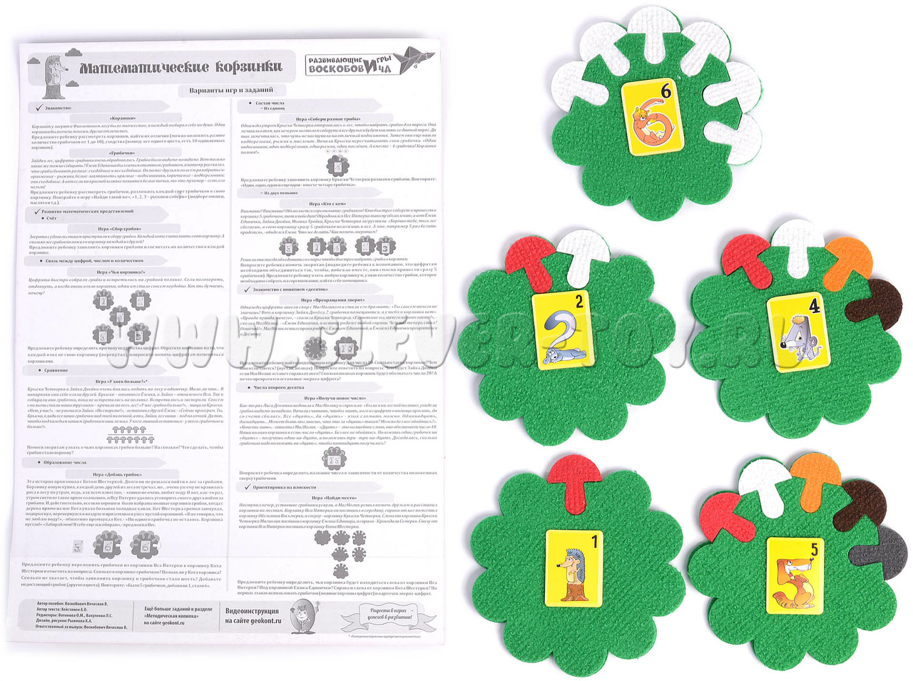 По сравнению с пособием «Математические корзинки 10» данное игровое пособие содержит увеличенное количество корзинок «дцать» и позволяет осваивать числа в пределах сотни.