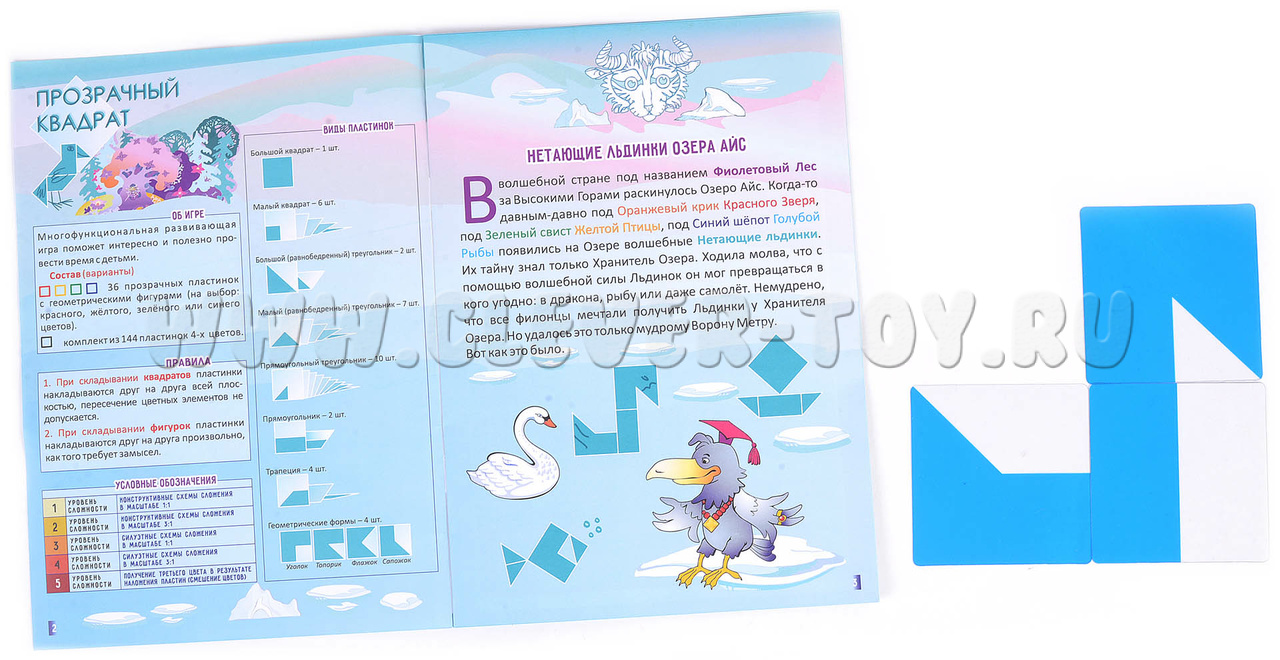 Головоломка "Прозрачный квадрат" помогает детям подготовиться к школе, развивает логику и творческое мышление. Игра включает разные уровни сложности, новые схемы и задачи, позволяет повторять рисунки, придумывать свои последовательности и соревноваться. Ребенок учится сортировать и сравнивать фигуры по форме, размеру, складывает из них квадраты, конструирует по схемам и собственному замыслу.