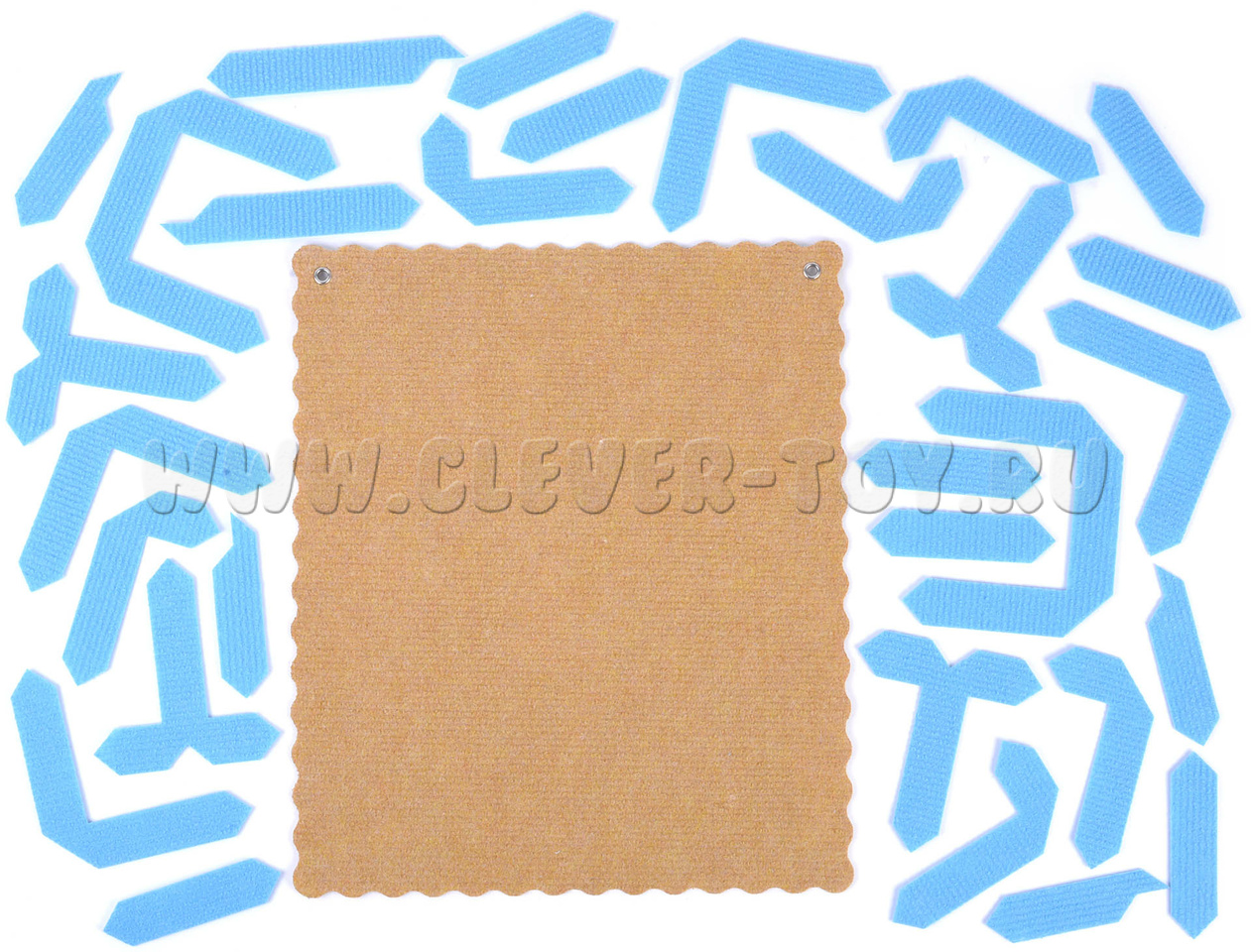 - 30 элементов из ковролина разной формы голубого цвета– «стрелочки» 8 шт., «уголки» 4 шт., «воротики» 2 шт., «клюшки» 6 шт., «лапки» 4 шт., «совочки» 6 шт.