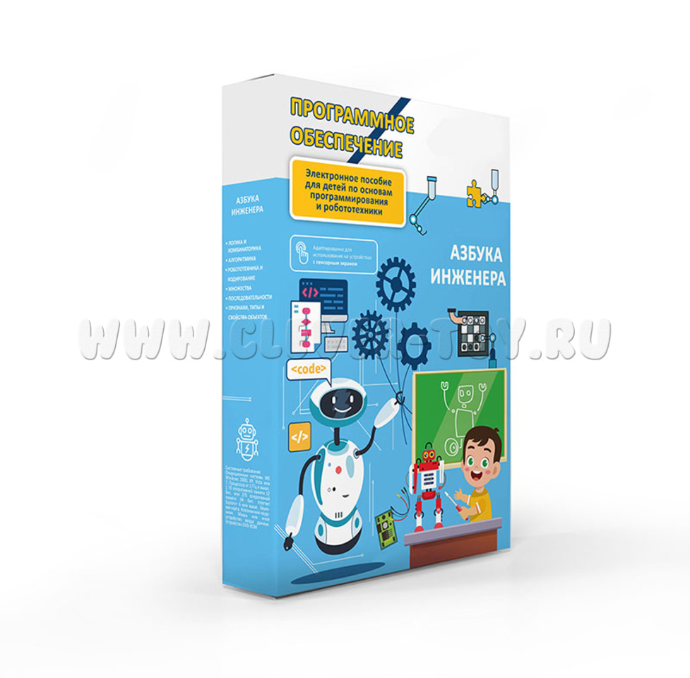 Комплект программного обеспечения "Olodim Азбука Инженера" - это электронное учебное пособие для интерактивного оборудования, которое в игровой форме знакомит детей с основами программирования и робототехники.