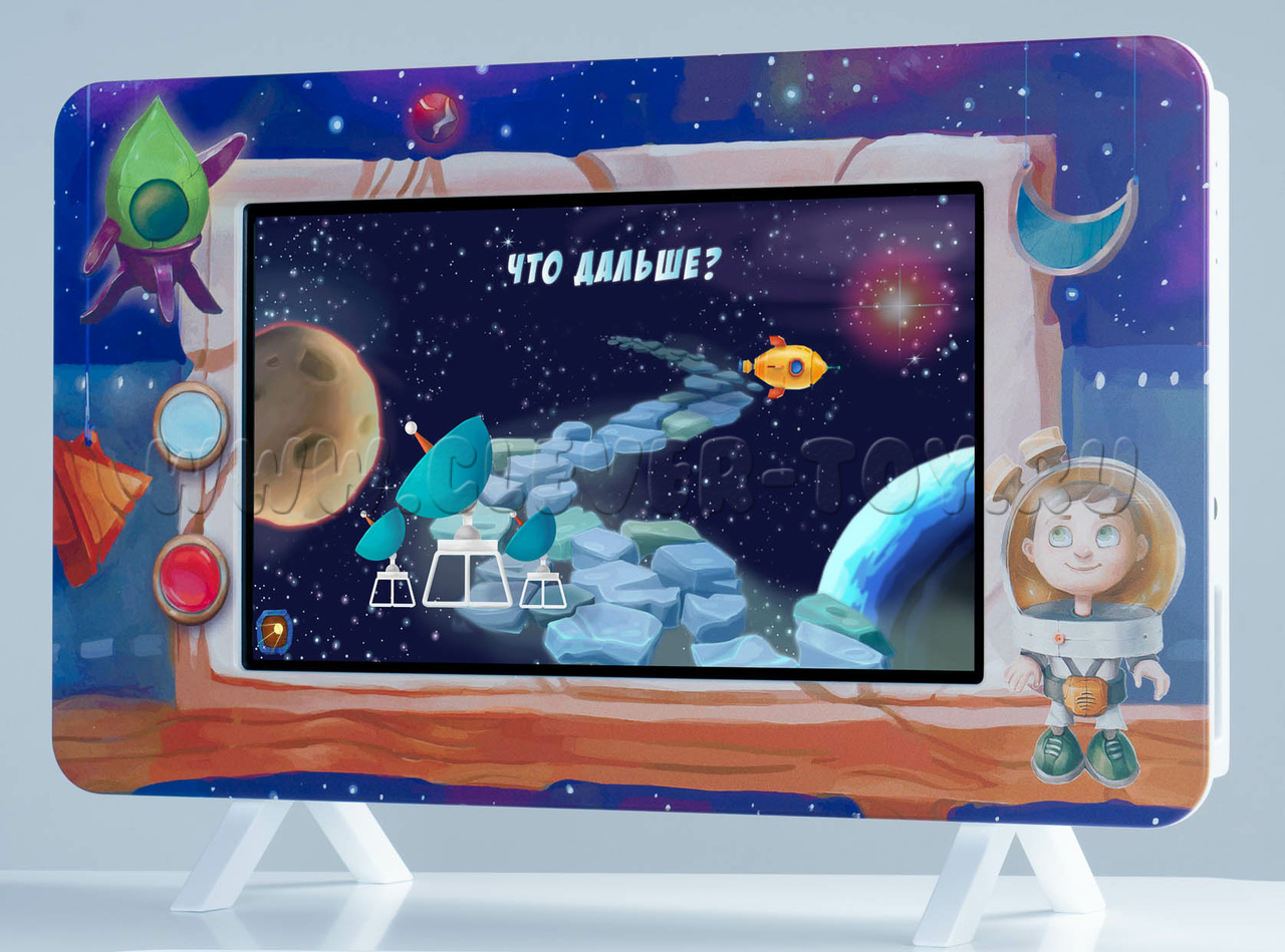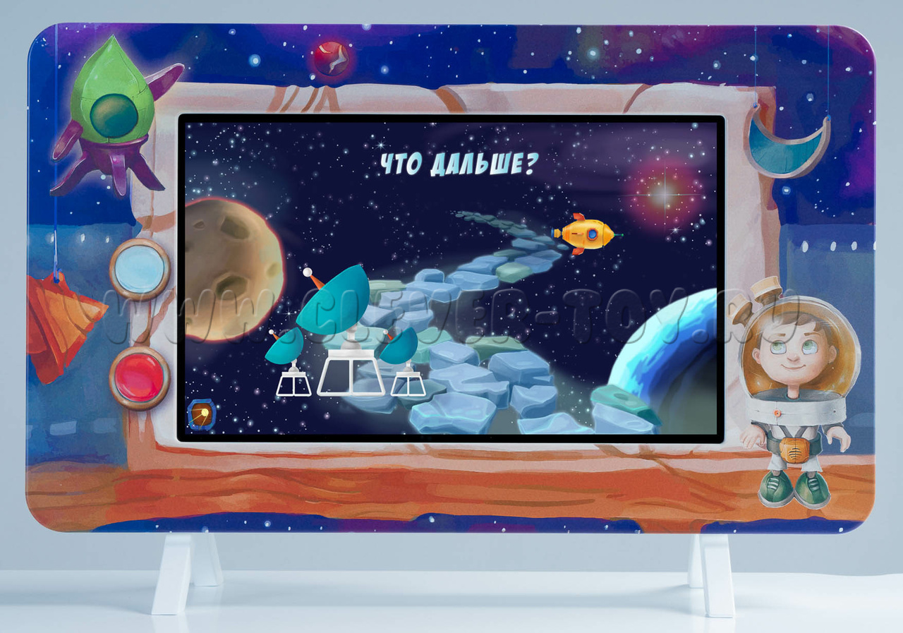 1. Интерактивная настенная панель 25 дюймов, оформленная в космическом стиле (Full HD, мультитач 10 касаний, intel, 4 гб RAM, SSD 120 гб, win 10);
