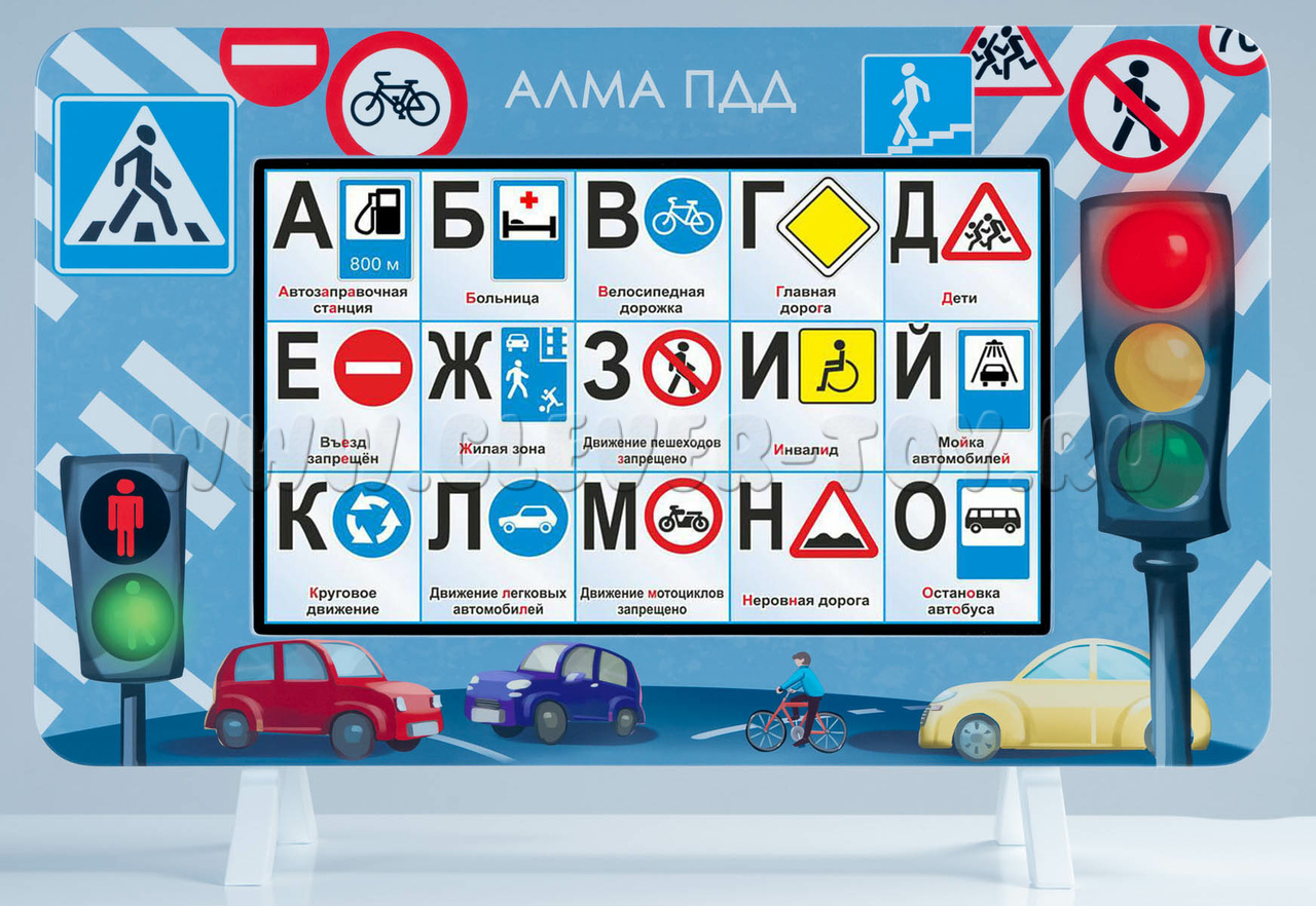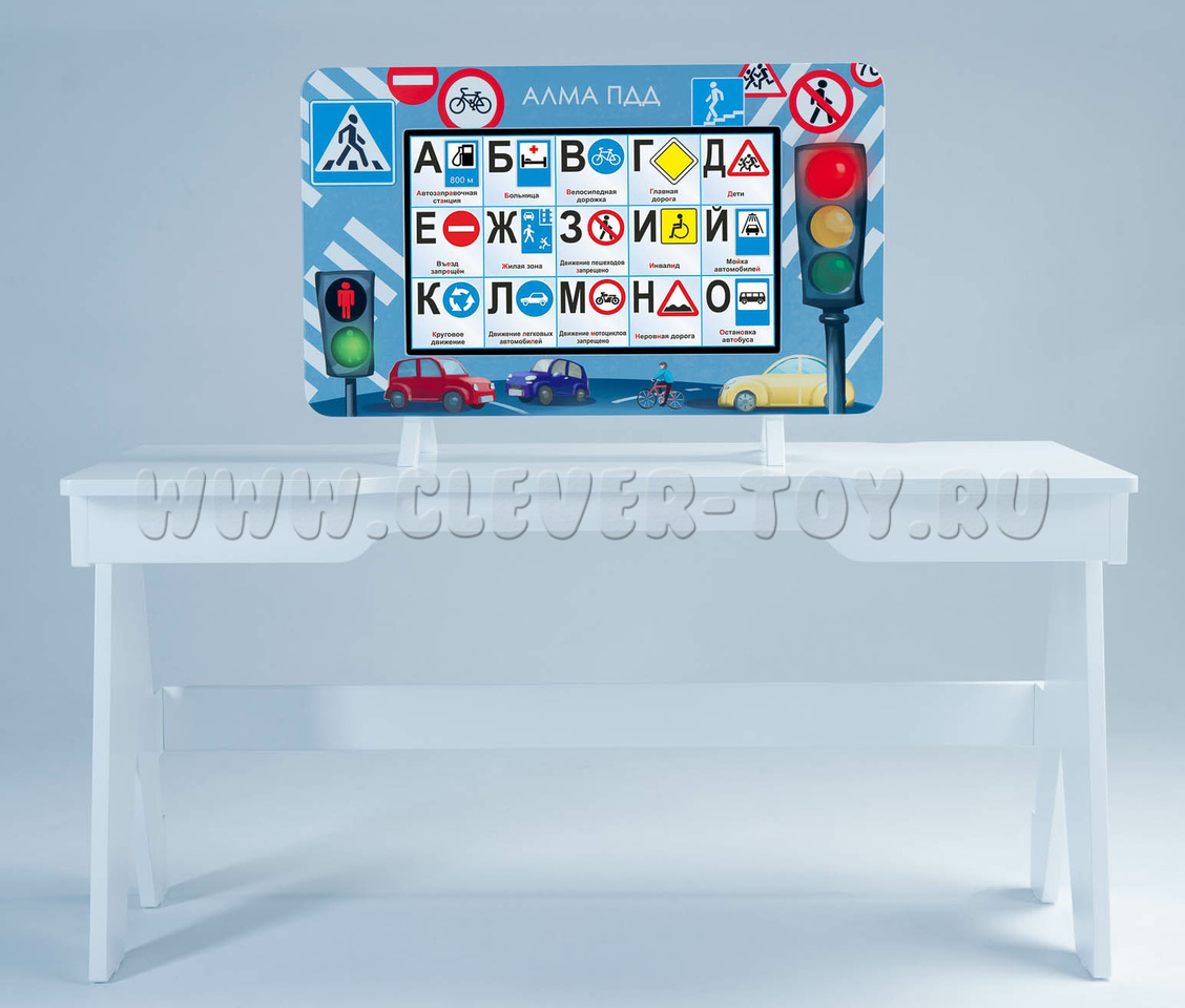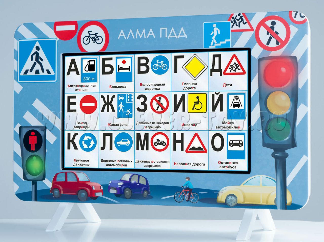 1. Интерактивная настенная панель 25 дюймов, оформленная в стиле "правил дорожного движения", со светофорами и знаками дорожного движения (Full HD, мультитач 10 касаний, intel, 4 гб RAM, SSD 120 гб, win 10);