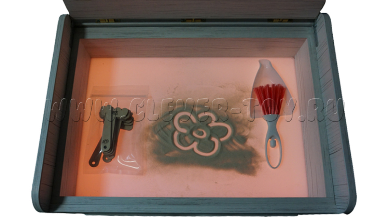 - световая песочница с возможностью изменения цвета и интенсивности подсветки,