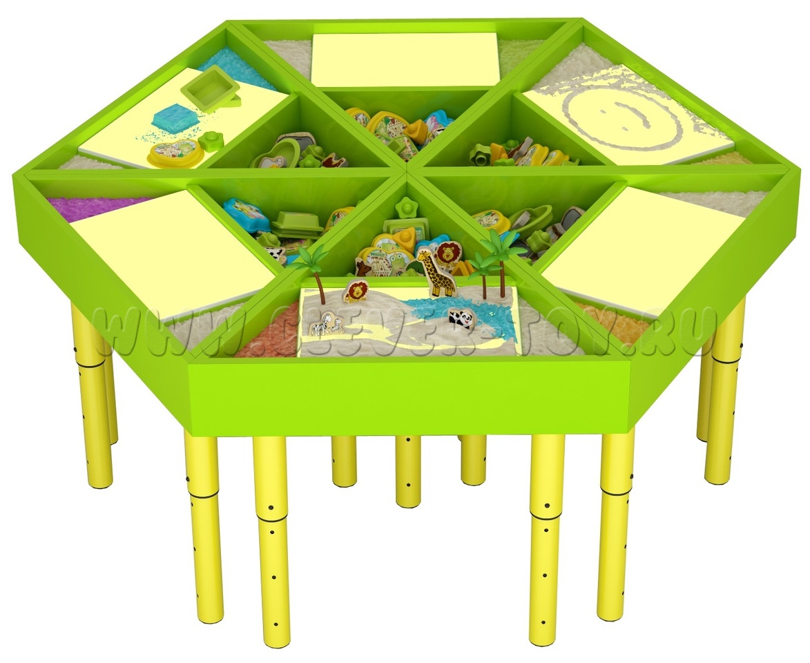 • 6 столов (мест) для рисования песком (в каждом по 3 отсека для песка, формочек и игрушек)