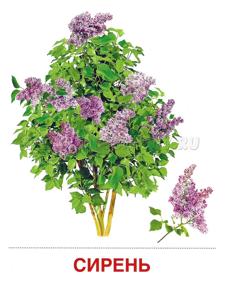 Состав комплекта (16 карточек): Берёза, Бузина, Вяз, Дуб, Ель, Ива плакучая, Каштан конский, Клён, Липа, Ольха, Осина, Сирень, Сосна, Тополь, Черёмуха, Ясень.