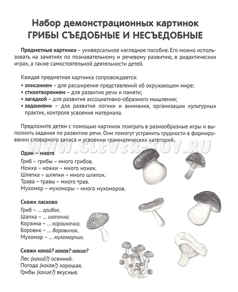 16 демонстрационных картинок для познавательного и речевого развития. На обороте каждой предметной картинки - описание, стихотворение, загадка, вопросы для ребёнка, название на русском и английском языках.