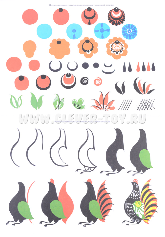 Демонстрационный материал "Учимся рисовать. Городецкая роспись 1"