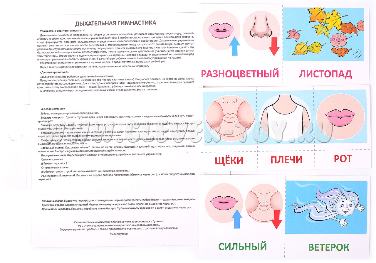 Набор карточек с рисунками. Дыхательная гимнастика, для детей 4-7 лет (учебно-игровой комплект)