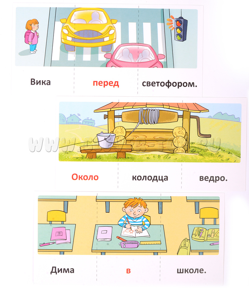 Набор карточек с рисунками. Играем с предлогами В, ОТ, ИЗ, ПЕРЕД, ИЗ-ЗА. ОКОЛО
