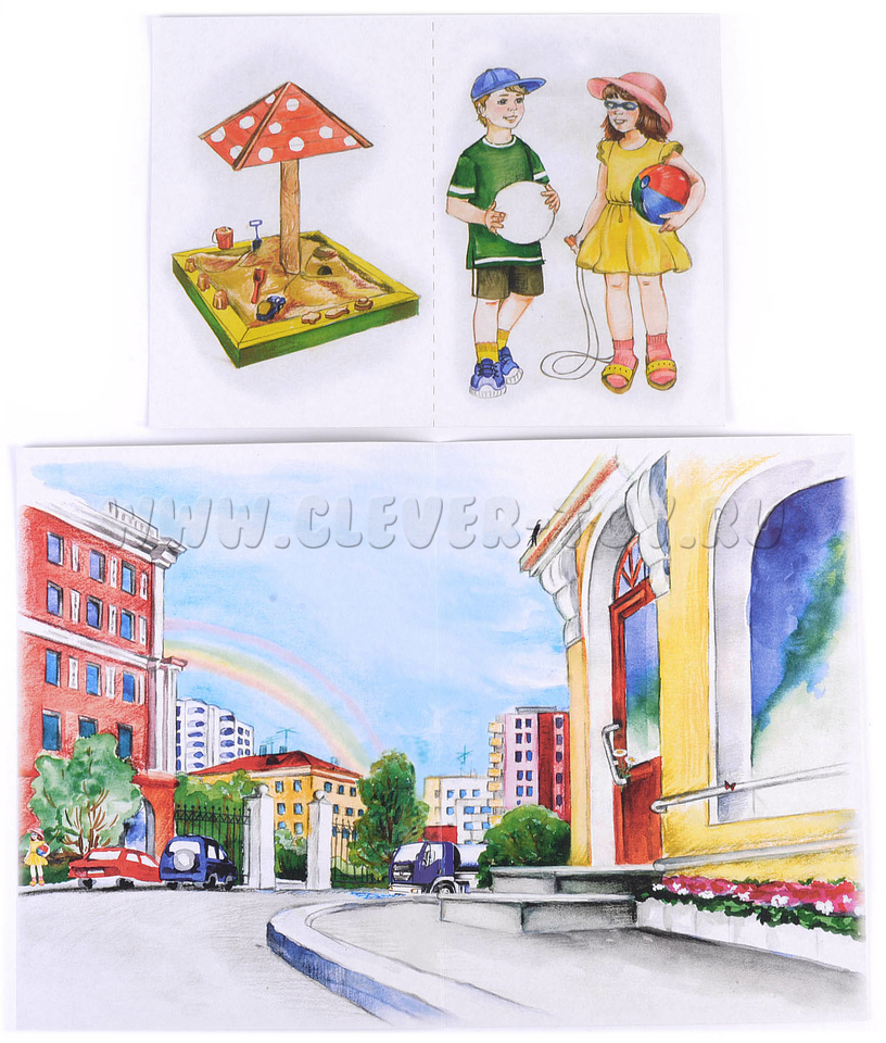 Найди сходства и отличия (с 5 лет). Ребёнку дают 4 картинки с городским пейзажем. Его задача сравнить рисунки и найти отличия.