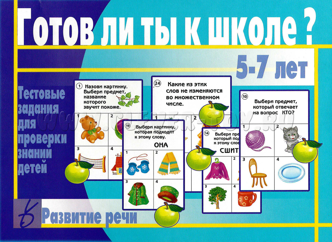 Тестовые задания для проверки знаний детей "Готов ли ты к школе? Развитие речи" отлично подойдут для занятий с детьми от 5 до 7 лет и помогут родителям, желающих подготовить своих малышей к школе. Изготовленные из качественного картона, карточки формата А4 содержат в себе иллюстрированные тестовые задания с вариантами ответа (по 4 варианта в каждом задании). Материал поможет проверить степень развития основных навыков дошкольника: внимания, памяти, логики, речи – важнейшего не только для успешной учебы, но и для повседневной коммуникации навыка.