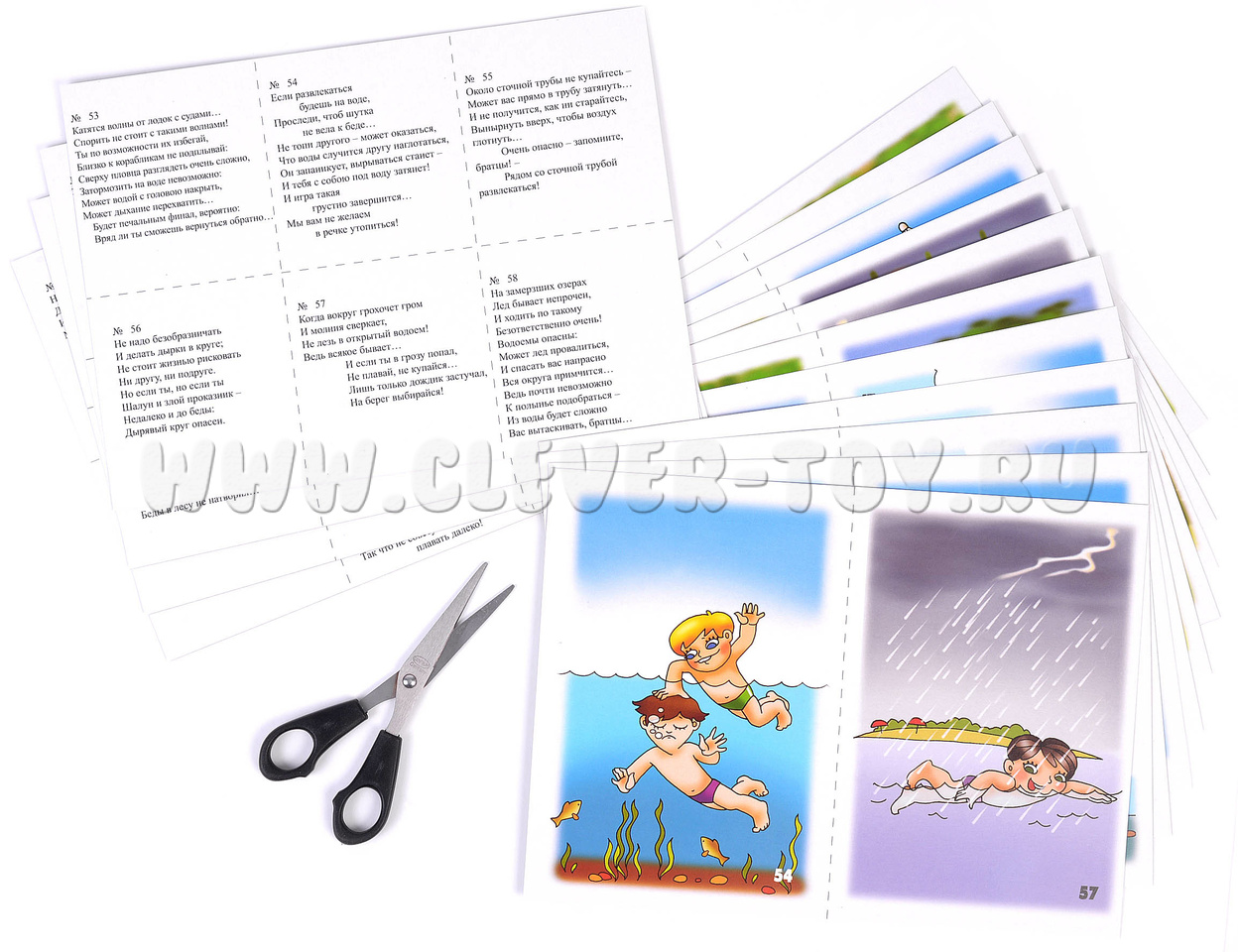 - Раздайте детям поровну картинки-иллюстрации. Начните зачитывать стихотворения. Игрок, чья картинка соответствует содержанию стихотворения, забирает карточку с ним себе и объясняет, как избежать опасной ситуации и выйти из нее, если ситуация все же случилась;