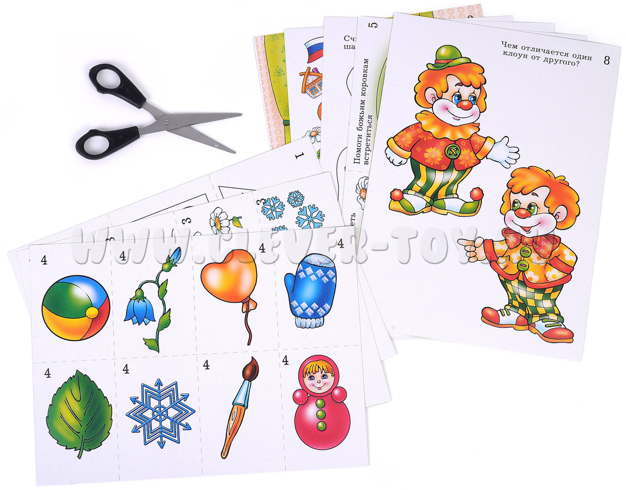 В наборе 8 карт формата А4 и удобная папка для хранения. Перед началом игры некоторые карты необходимо аккуратно разрезать по пунктирным линиям. Все задания нацелены на тренировку произвольного внимания и памяти и подразумевают одновременное запоминание предметов, их количества, формы, последовательности. Каждая карточка – отдельное задание.