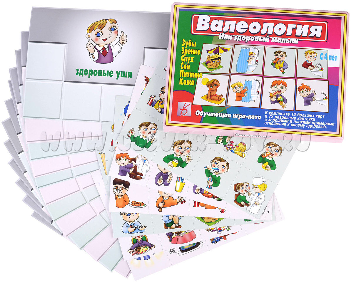 Развивающая игра "Валеология" адресована педагогам ДОО, воспитателям и родителям и предназначена для занятий с детьми младшего дошкольного возраста. Игра-лото - наглядный дидактический материал, нацеленный на: