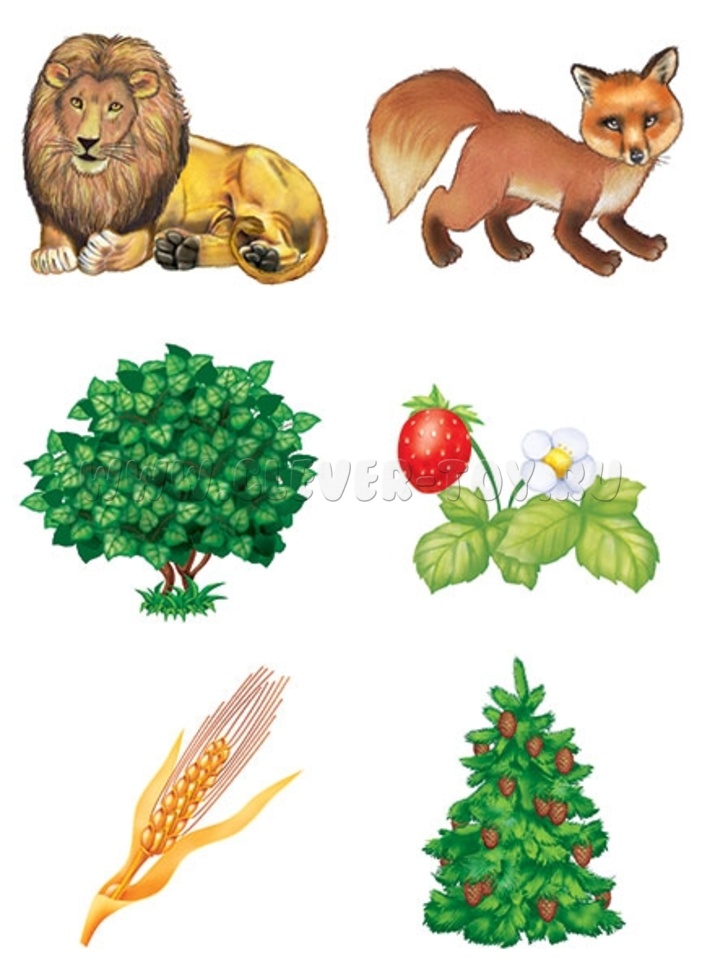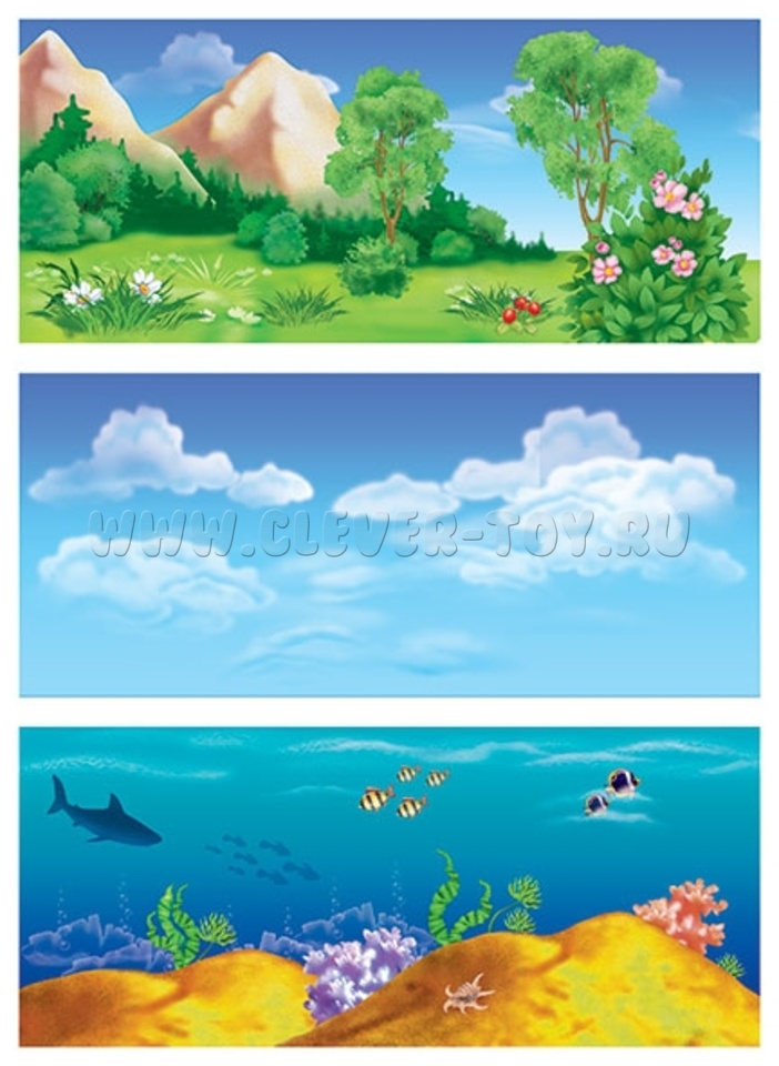 • Предложите ребенку (или группе детей) разложить карточки с растениями и животными по группам в зависимости от среды обитания существ, попросите их рассказать, кто и где живет;