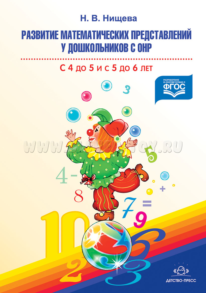 Пособие "Развитие математических представлений у дошкольников с ОНР ( с 4 до 5 и с 5 до 6 лет)" рекомендовано к использованию в дошкольных образовательных учреждениях. В пособии представлены конспекты занятий воспитателя по развитию математических представлений у дошкольников среднего и старшего дошкольного возраста.
