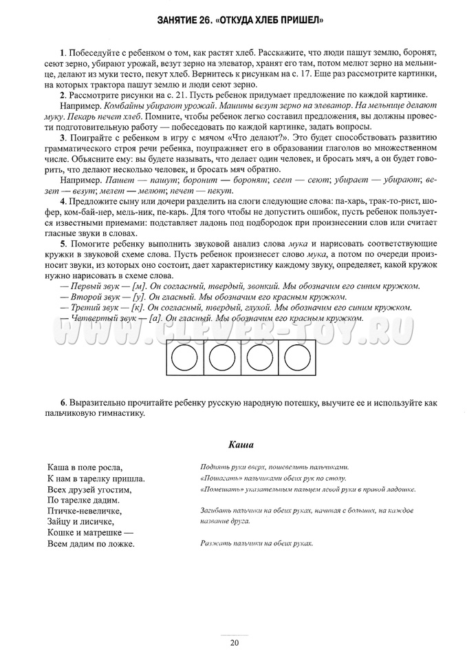 Одно из заданий предполагает работу по картинкам. С двадцатого занятия начинается обучение ребенка составлению рассказа по картинке. Методика обучения подробно изложена в заданиях.