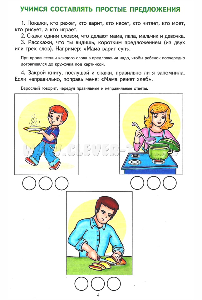 Выполняя задания по данной тетради, ваш ребенок научится составлять простые предложения, расширит словарный запас глаголов, научится правильно употреблять существительные единственного числа в различных падежах, познакомится с простыми предлогами. Автор использует принцип многоуровневой подачи материала, что позволяет заниматься с детьми разного возраста и разным уровнем речевого развития.