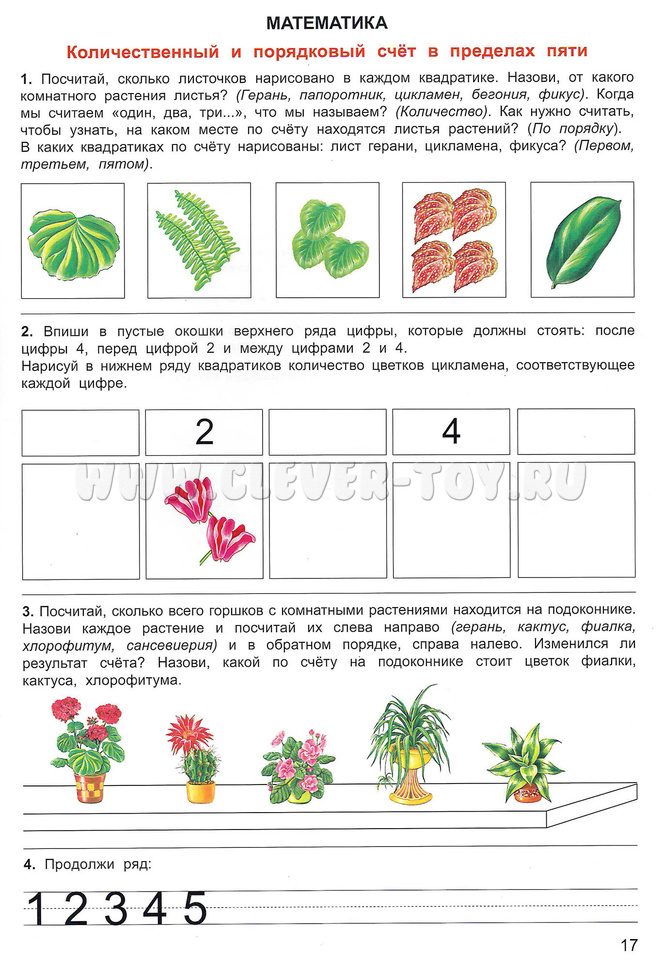 • Познавательно-развлекательные задания (соедини линиями точки, раскрась рисунок, последовательно соедини точки по цифрам, четвёртый лишний, что перепутал художник, викторина, математика (количественный и порядковый счет в пределах пяти)).