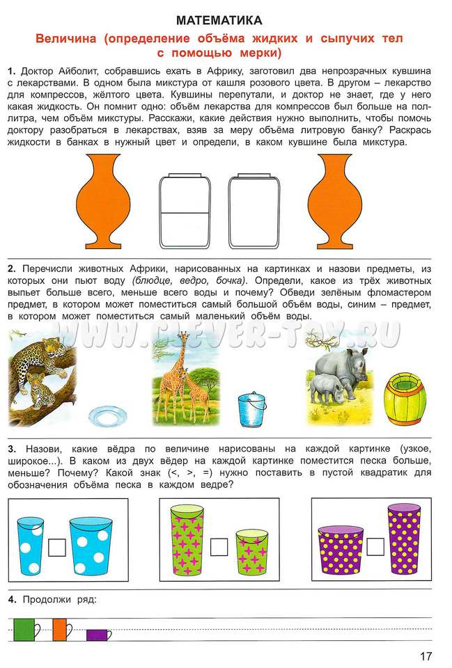 • Математика "Величина: определение объема жидких и сыпучих тел с помощью мерки".