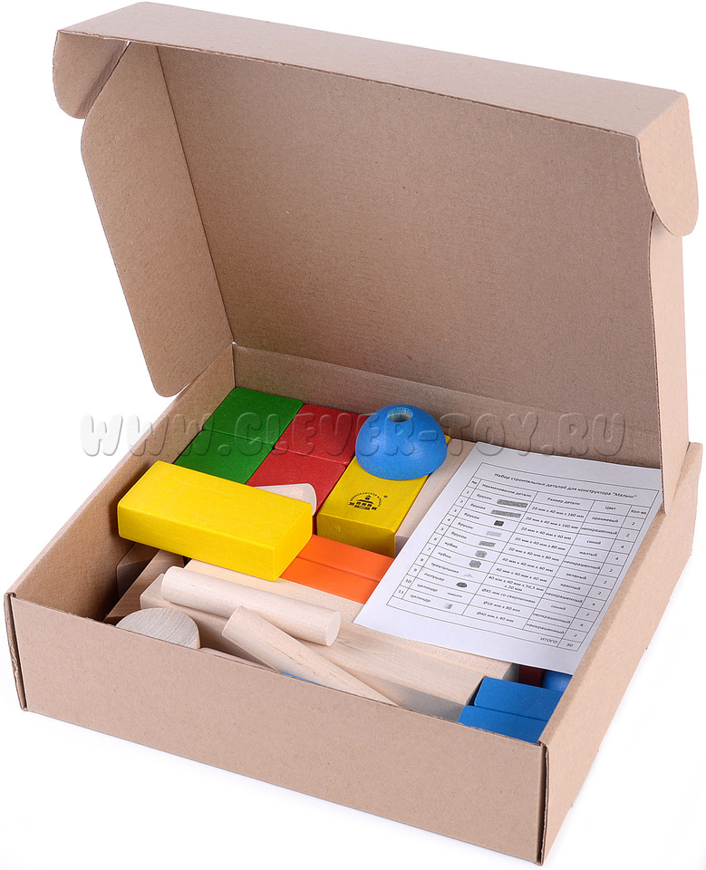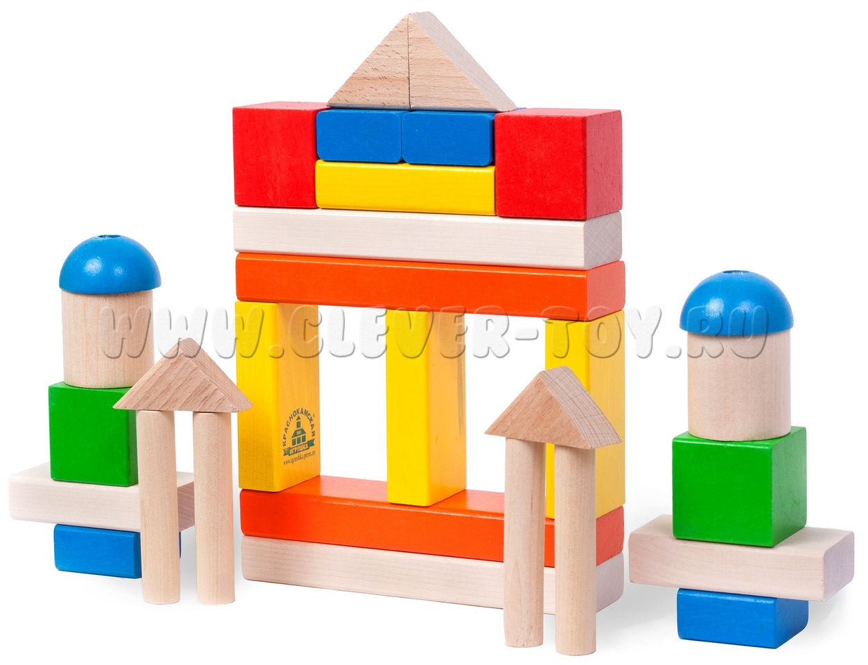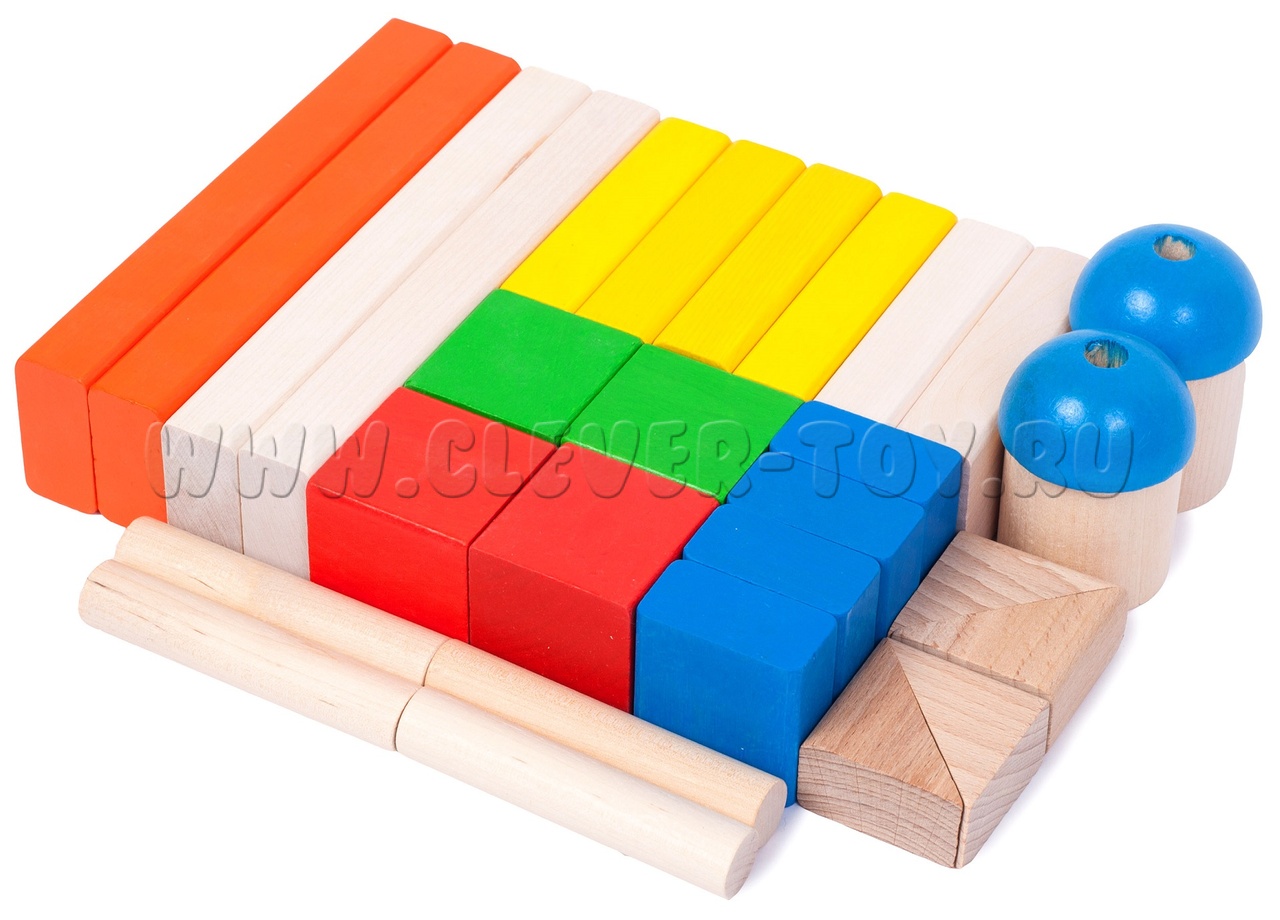 Игра с деревянным конструктором способствует изученю цвета и геометрических объемных форм, величины и размера деталей.