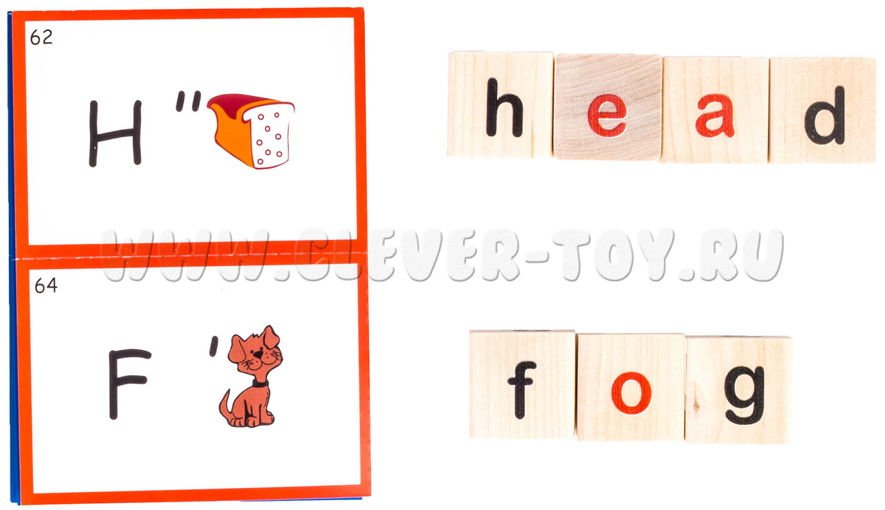• 25 деревянных кубиков с буквами английского алфавита, сочетаниями букв, местоимениями, глаголами, отрицательными частицами, знаками препинания, вопросительными словами;