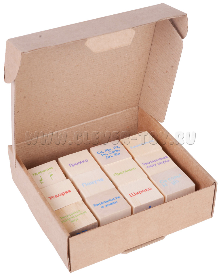 • 12 деревянных кубиков с музыкально-теоретическими понятиями;