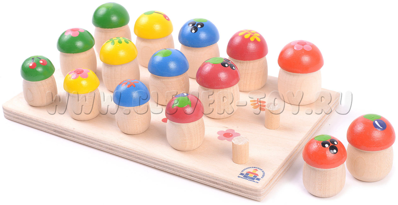 Простая и очень увлекательная игра! С помощью нашего красочного грибного набора Ваш ребенок быстро освоит счет до 15, запомнит основные цвета, научится группировать предметы по величине, а также познакомится со значением слов, используемых в повседневной в жизни, например, "такой же", "разные", "одинаковые".