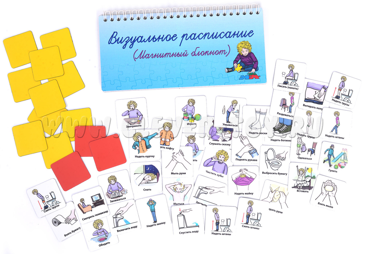 Магнитный блокнот "Визуальное расписание" с набором карточек для особенных деток, тех, которым поставлен диагноз "Аутизм".