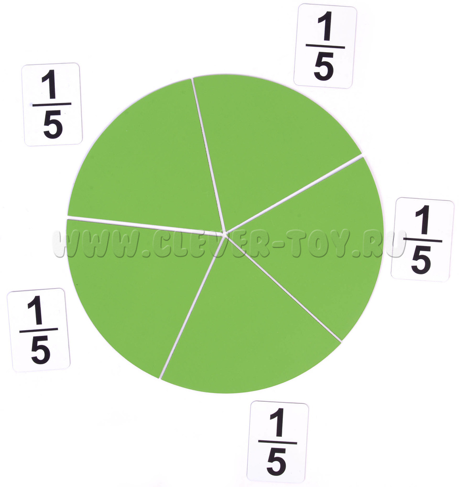 В наборе 36 магнитных карточек. Состав в описании изделия. 18 карточек - цветные части круга (от 1 до 1/10). 18 белых карточек с указанием величины дроби (от 1 до 1/10). Диаметр пособия в собранном виде 27 см.