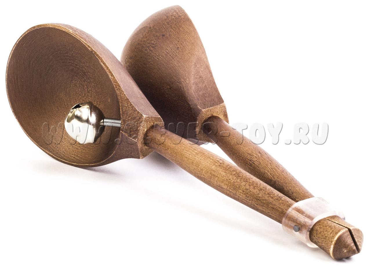Ложки в станке народный музыкальный инструмент, который являлся предметом быта. Музыкальные ложки имеют некоторые отличия от обычных деревянных ложек. У них удлиненная рукоять и сделаны из более твердого дерева. Ложки в станке это две соединенные между собой, ложки. Их черенки скреплены между собой штырем и сточены под углом в 45 градусов. Благодаря их конструкции, ребята с легкостью извлекут звуки, ударяя по ладошкам и коленям. Ложки – развивающий музыкальный инструмент, который отлично подойдет начинающим музыкантам и познакомит с историей и культурой древней Руси. Деревянные ложки гармонично будут смотреться как в детский образовательных учреждениях, так и в домашних условиях. Ложки в станке выполнены в мастерской Сереброва, заботливыми и теплыми руками, только из натуральных, экологичных материалов. Ложки выполнены из натуральной березовой, тонированной древесины, а с наружной стороны ложки прикреплен бубенчик. Мы стараемся делать так, что бы развитие проходило не только увлекательно, но и безопасно! Деревянные ложки купить можно в нашем магазине с доставкой в любой город России.